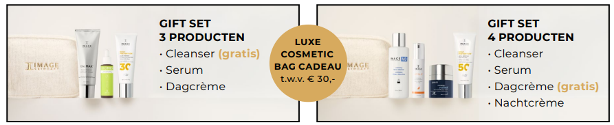Bij elke set ontvang je bovendien een luxe Image cosmetic bag cadeau t.w.v. €30,- stijlvol, praktisch en perfect voor thuis of op reis.